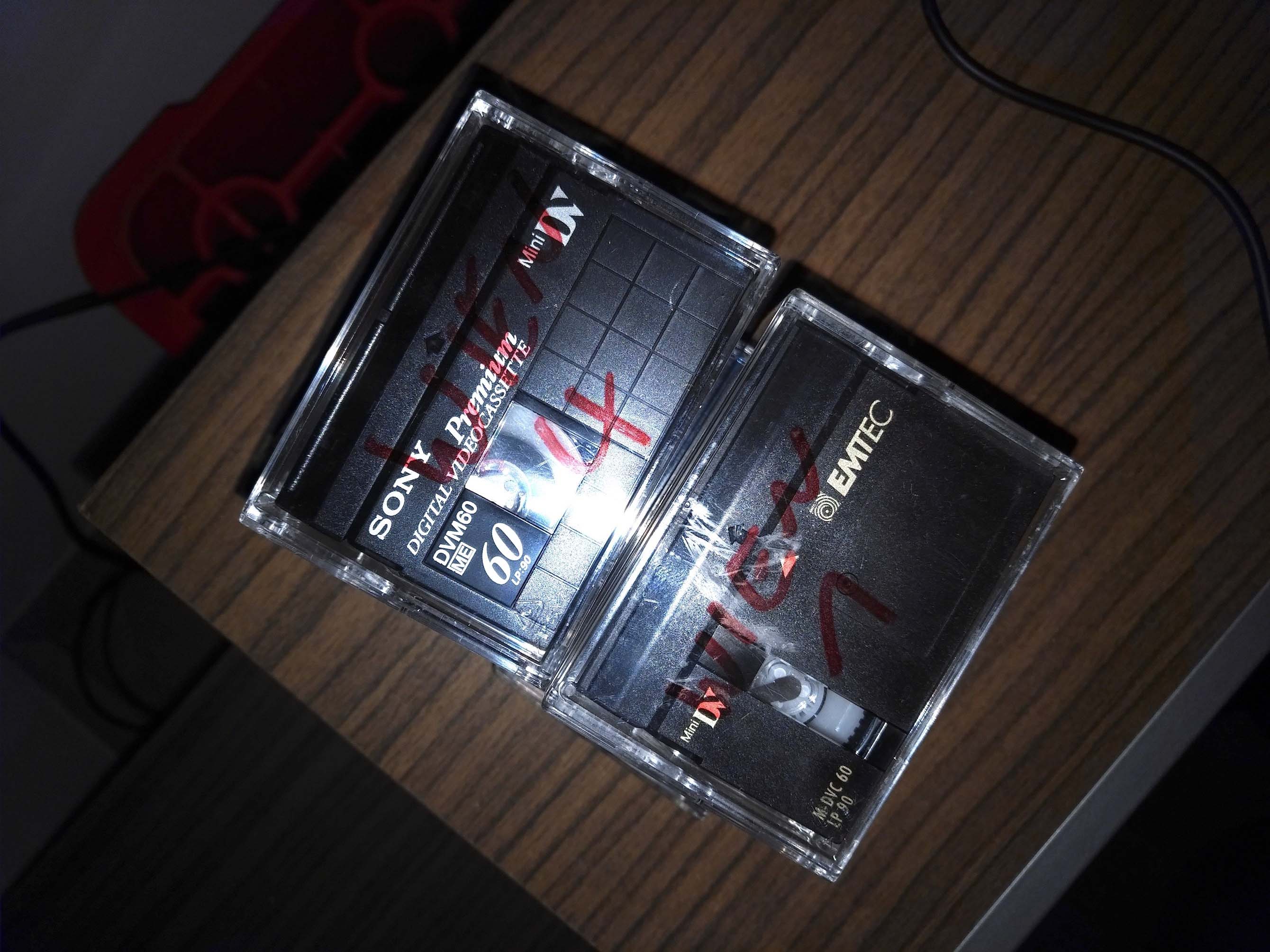 UNTITLED (WIEN 1–8), 8 x MINI DV TAPES PLAYED AT RANDOM, TAPE DECK, HD PROJECTOR, ACTIVE SPEAKERS, 2021