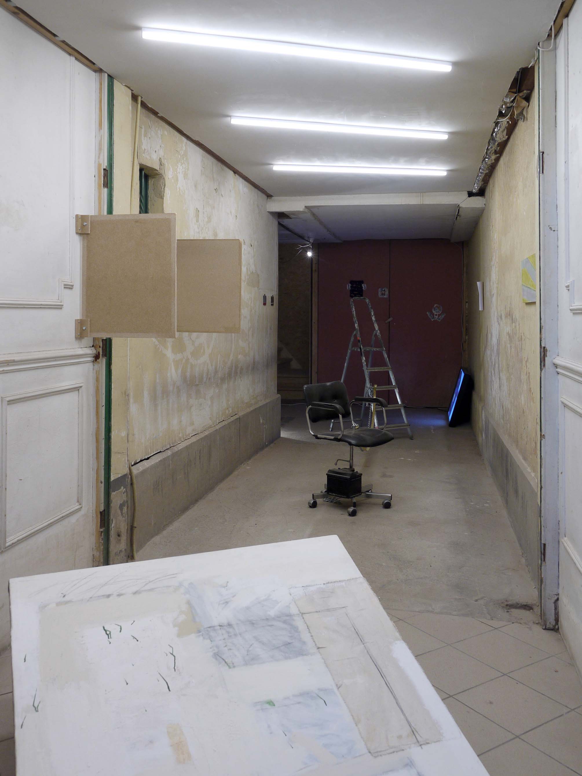 SLOW RAMP, WALL PAINT, FABRICS, COAL, BITUMEN PAINT CAN, 2021